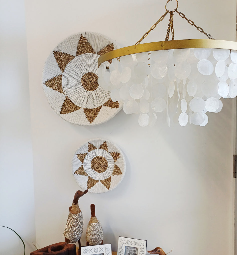 Suspended in a modern circular design, this piece is perfect for dining rooms, entryways, or any space that calls for a striking statement. A timeless blend of coastal charm and contemporary style.