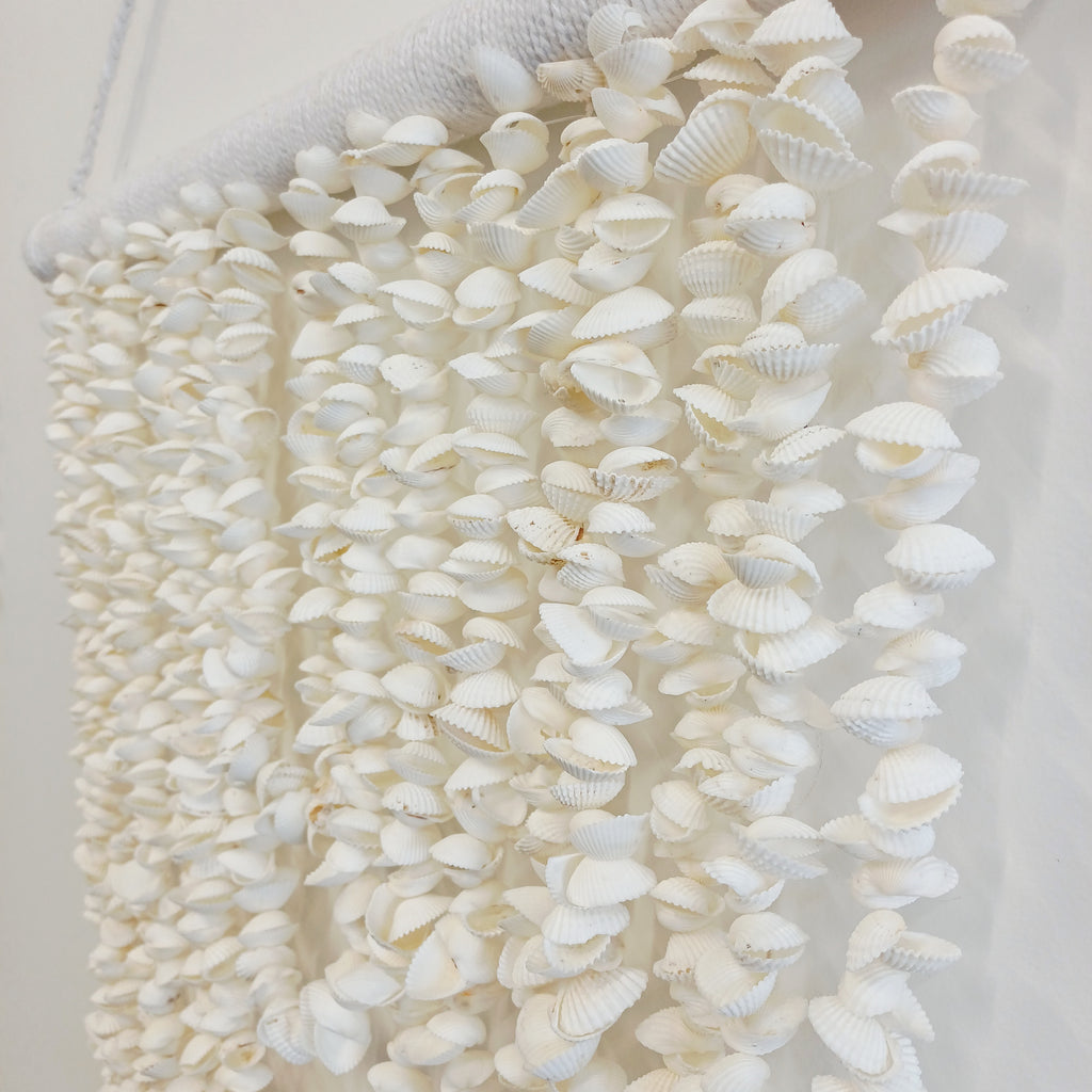 Handcrafted with cascading layers of natural seashells, this wall hanging evokes the serene beauty of ocean waves and tropical breezes. Each shell is carefully arranged to create a flowing, waterfall effect — adding texture, movement, and a natural coastal charm to your wall.