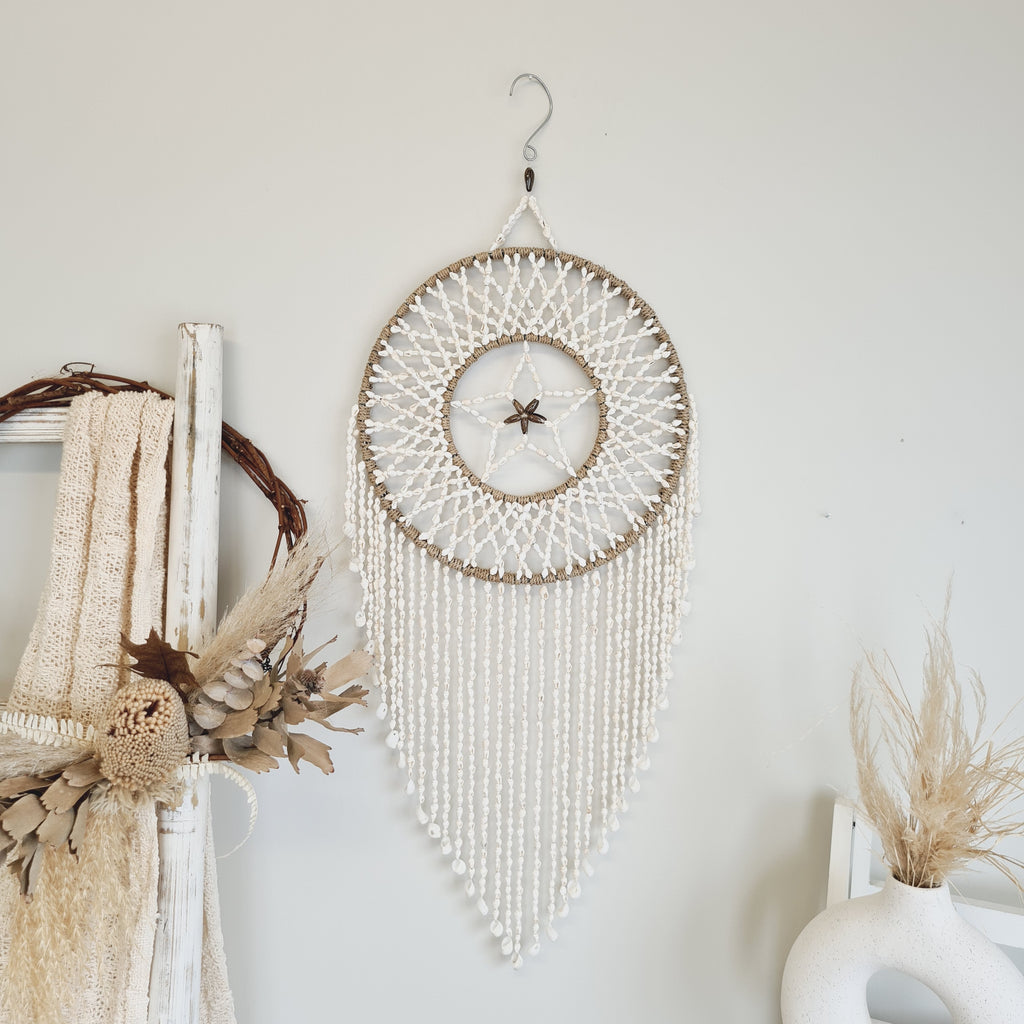 Beautiful statement Dreamcatcher, delicately made with shells and Seagrass.