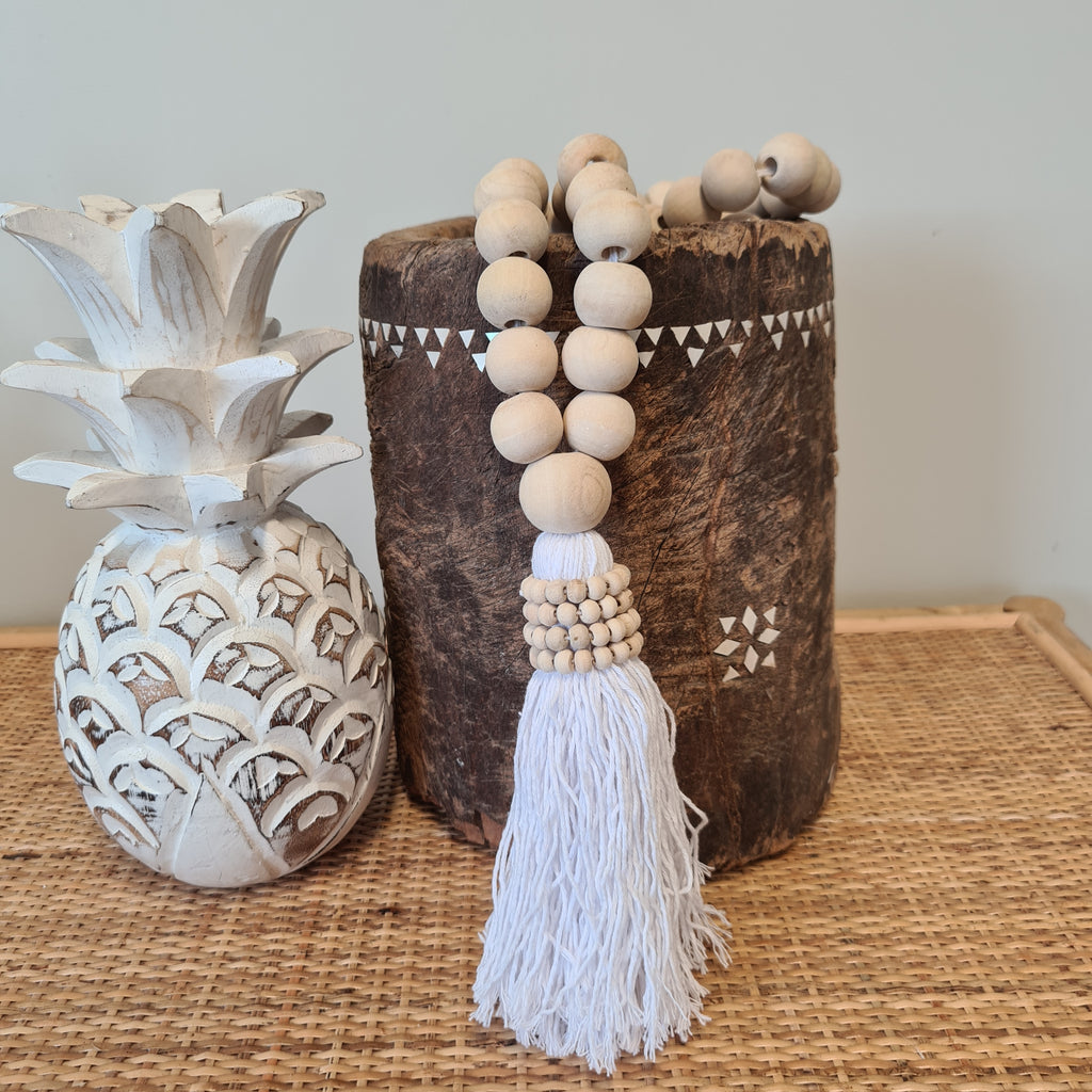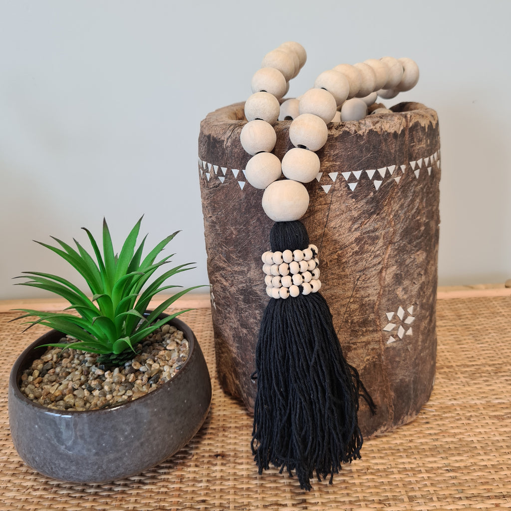 The Chunky Tassel is a handcrafted decor piece that blends natural textures with timeless appeal. Whether displayed on a wall, layered with other items, or placed on a console table, it enhances your home with its unique artisanal character.