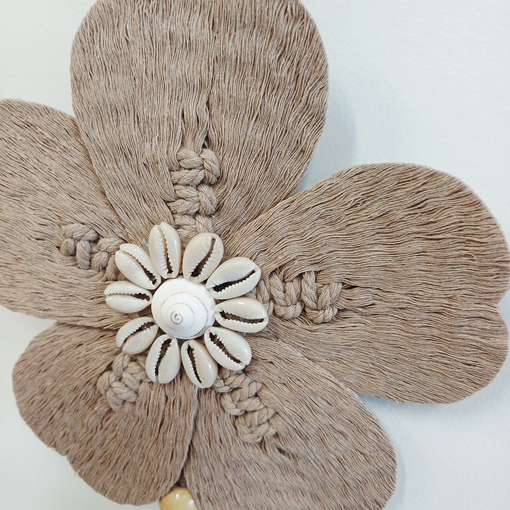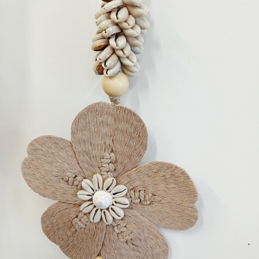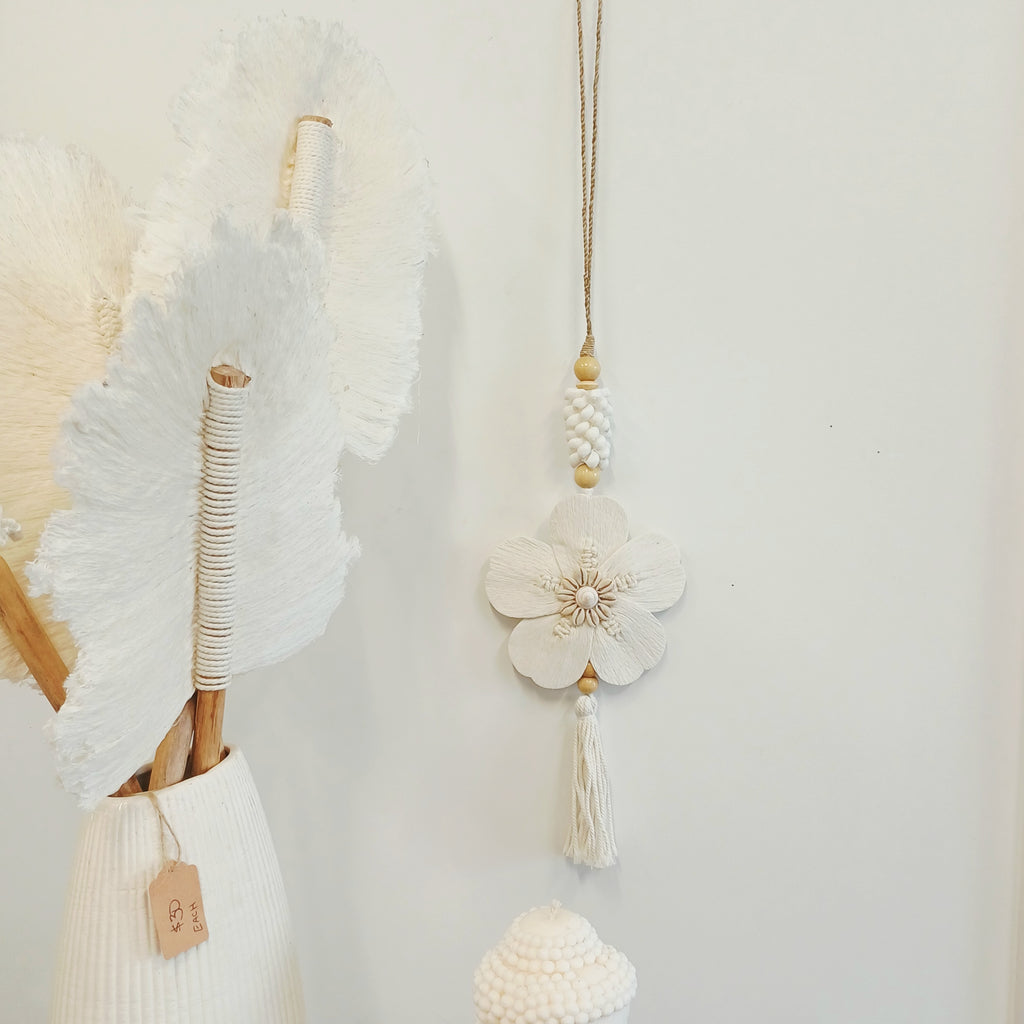 Bring soft, natural charm into your home with this beautifully handcrafted cotton flower and shell tassel. Delicate cotton blooms are paired with lustrous natural shells, creating a gentle blend of texture that feels coastal, boho, and effortlessly warm. Each tassel is made by hand, giving every piece its own unique character and organic detailing.