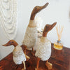 Bring a touch of rustic charm and artisan elegance to your space with these beautifully hand-carved wooden ducks. Each piece is crafted from natural wood and thoughtfully adorned with woven seagrass accents and delicate natural beads, highlighting the beauty of simple, organic materials.