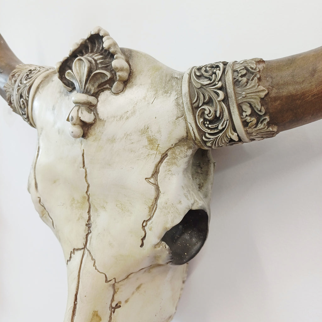Make a bold statement with this striking large resin skull, designed to add drama and character to your interior. Featuring detailed sculptural contours and a beautifully finished surface, this decorative piece captures the strength and symbolism of the bull while offering this modern but elegant.
