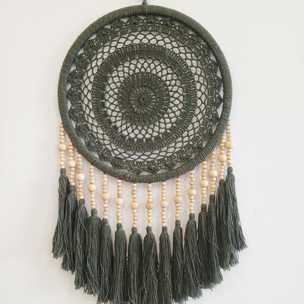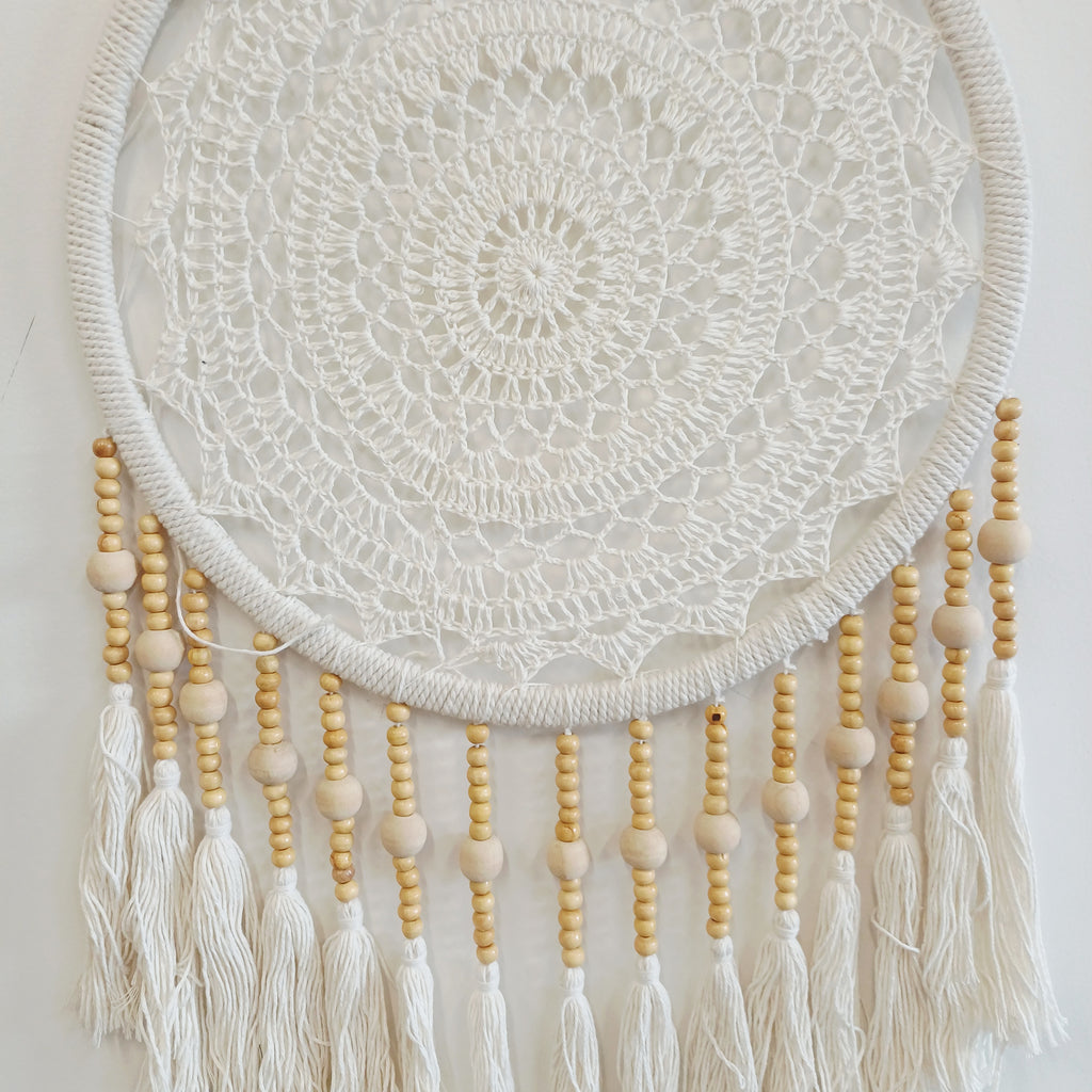 Perfect for bedrooms, nurseries, and entryways, it introduces a quiet bohemian spirit while encouraging a sense of ease in your surroundings. Each dreamcatcher is made by hand, giving every piece its own unique character and natural variation. A serene and beautifully balanced décor piece that brings gentle beauty into your home.
