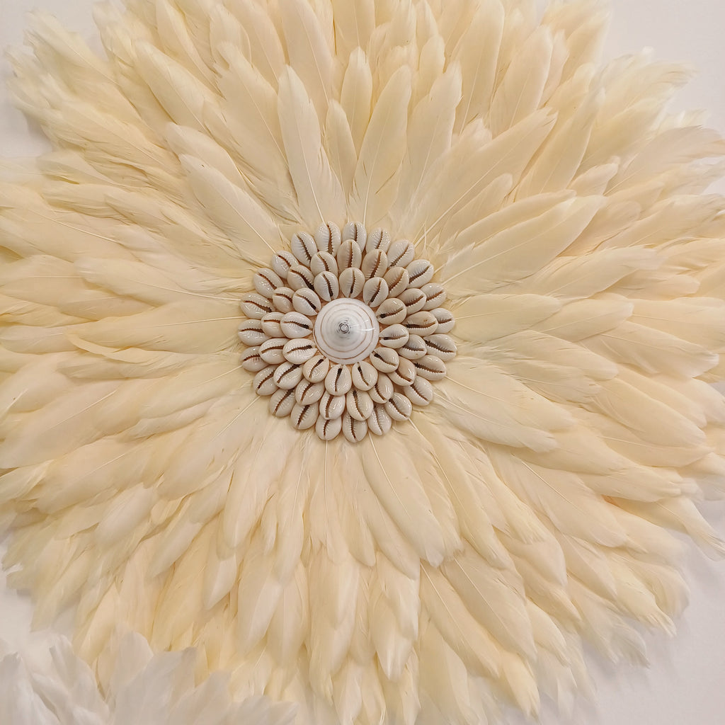 This 40cm Lemon Sorbet Juju wall hanging is handcrafted with delicate feathers in a calming pastel tone and finished with a central shell accent. Lightweight and easy to hang, it's perfect on its own or styled in a trio cluster. Ideal for bedrooms, hallways, or as a thoughtful gift.